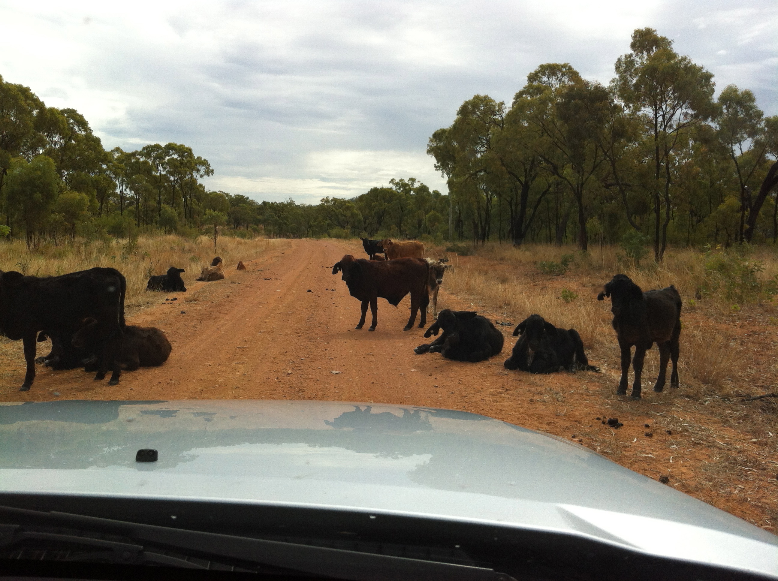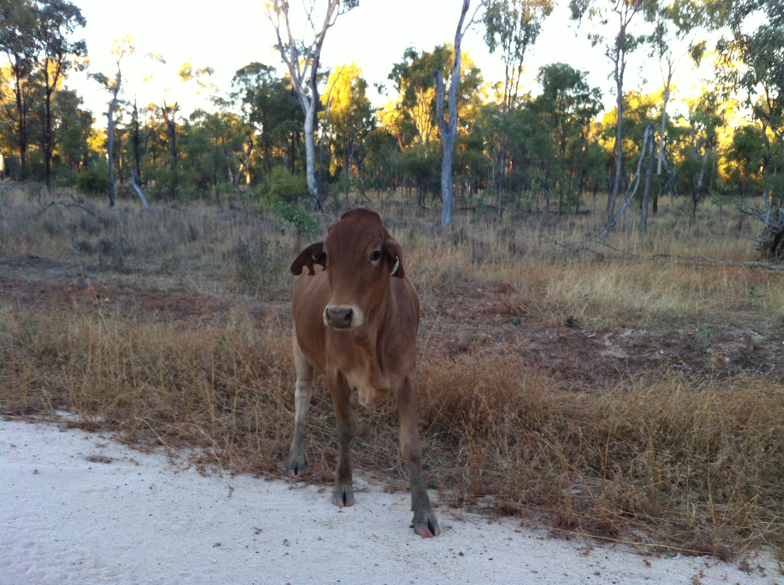 Termite mounds as tall as kangaroos lurked in the long grass. Sometimes it was a kangaroo, appearing in a single explosive leap. Another bound and it was gone. Each time I let out a cry, ‘Whoah!’ forcing myself not to brake, not to swerve. A feral pig shot across the road, its black nuggetty energy bursting out of the bush. I saw rock wallabies, wedge tailed eagles, emu, rabbits and, of course, cattle. Herds of Braham bulls, with solemn faces, long ears and loose skin, lumbered out of the way as I passed. This is Brahman breeding country.