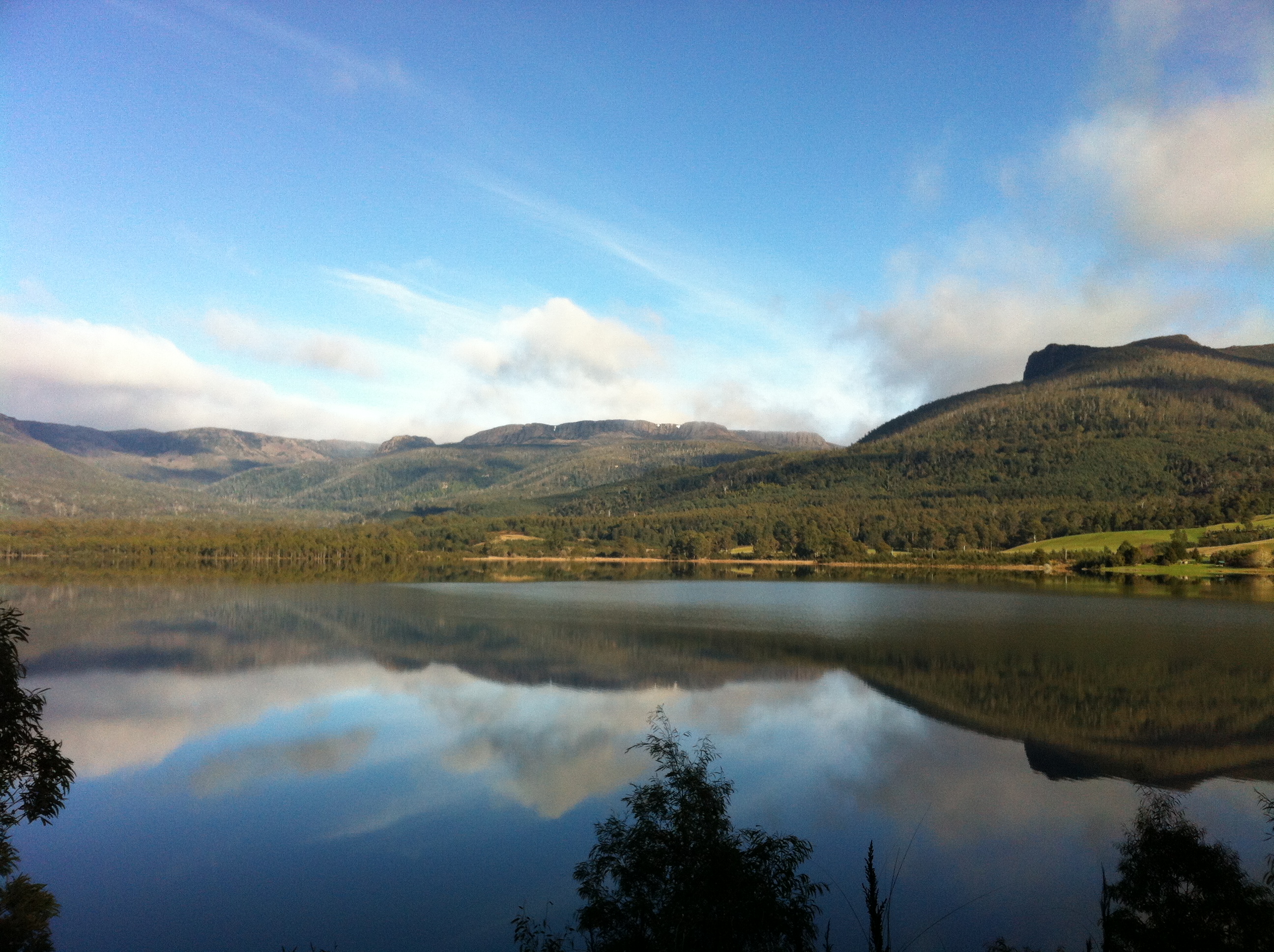 Early next morning the sun rose over tree covered mountains and steep paddocks. Mist hovered over the Meander Valley, thick dew covered the grass, a fast running creek chattered behind the house and peacocks roamed beside winter-bare trees in a mature orchard. It was a shock of unexpected beauty, all of it hidden in darkness the night before.