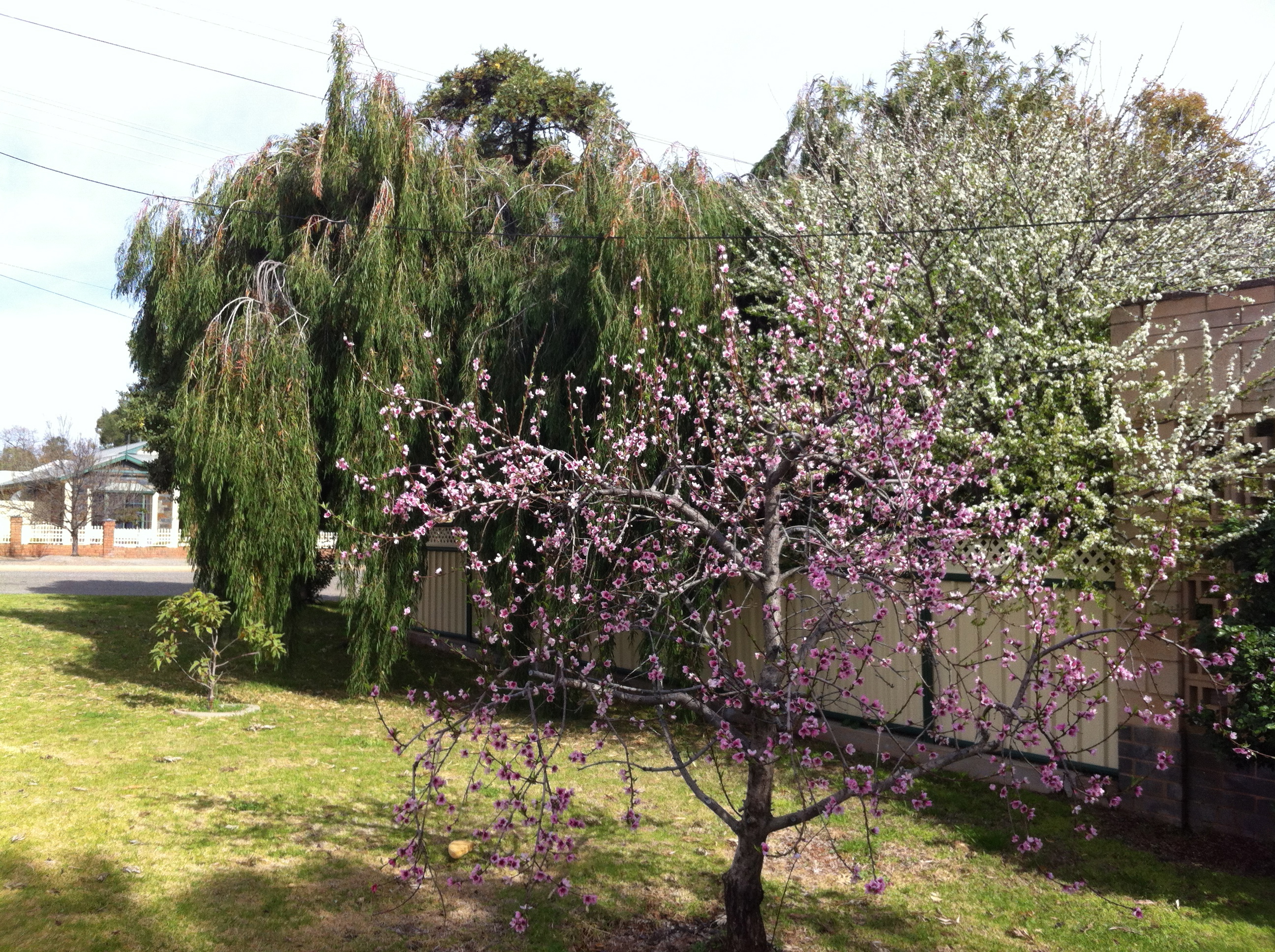 How can I leave? The roses are blooming, the three-year old apricot is smothered in specks of velvet and when the cockatoos work out how many almonds are on the tree, we’ll be invaded. It’s the same everywhere – an abundance of blossom on grapefruit, lemon, orange, nectarine and peach trees.