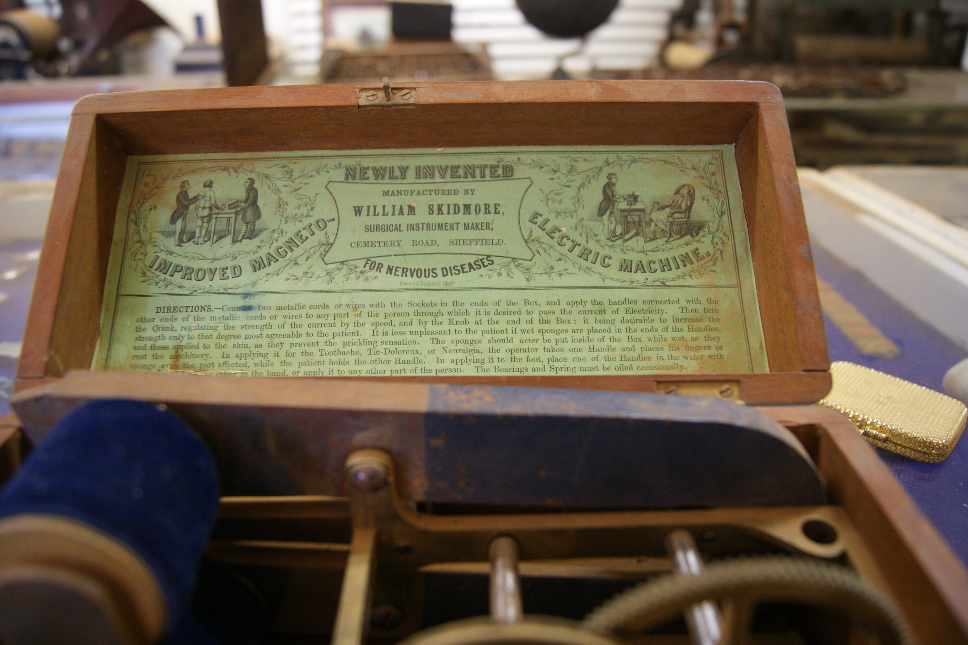 and, alarmingly, an early machine for administering electric shock therapy that still works.