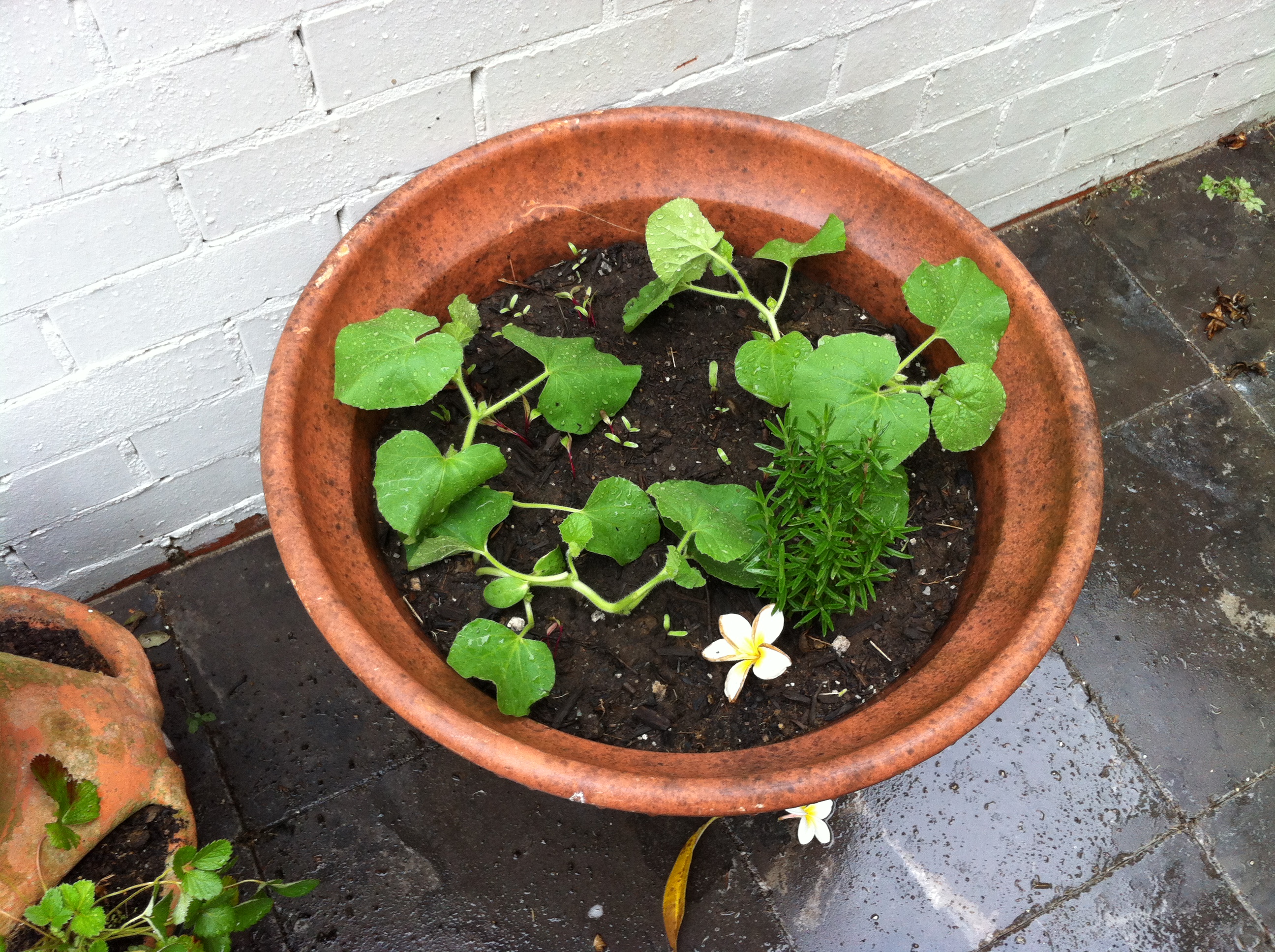 So, even though they’re growing faster than we can eat them, I’m glad I planted lettuce. In less than a month they produced huge crisp heads. Just seeing something green when I look out of the window is worth it, even if those lettuce are going to seed already in the sweaty heat of a Sydney summer. The melons have sprouted with extraordinary speed too.