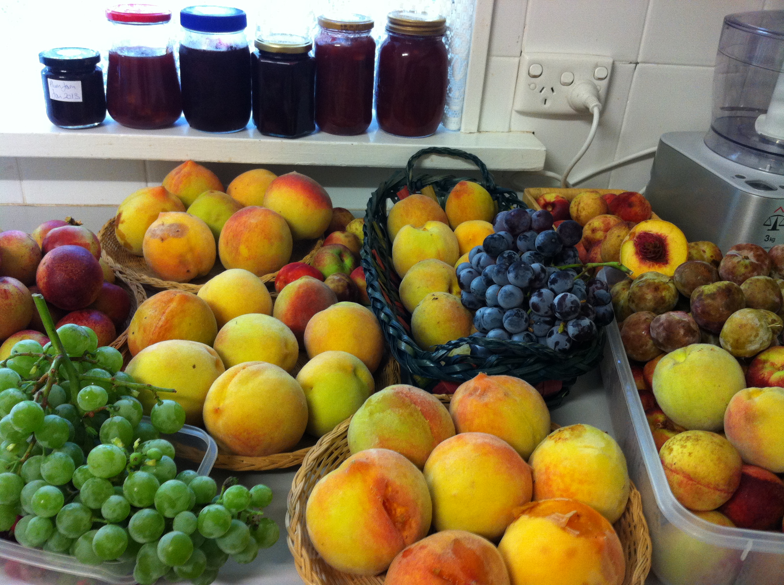 It’s not much better in Broken Hill. Last year I grew more food than we could eat, harvesting bumper crops of fruit and veg that had me rubbing my hands with glee, stoking the fires of my avaricious nature. Several times a day I would open the fridge door and stare at the bounty I’d managed to accumulate. I gave some of the harvest away but not nearly as much as I should have. I simply enjoyed the sight and feel of it, rubbing the fur on soft peaches, sniffing ripe melons and pressing the flesh of blood red plums.