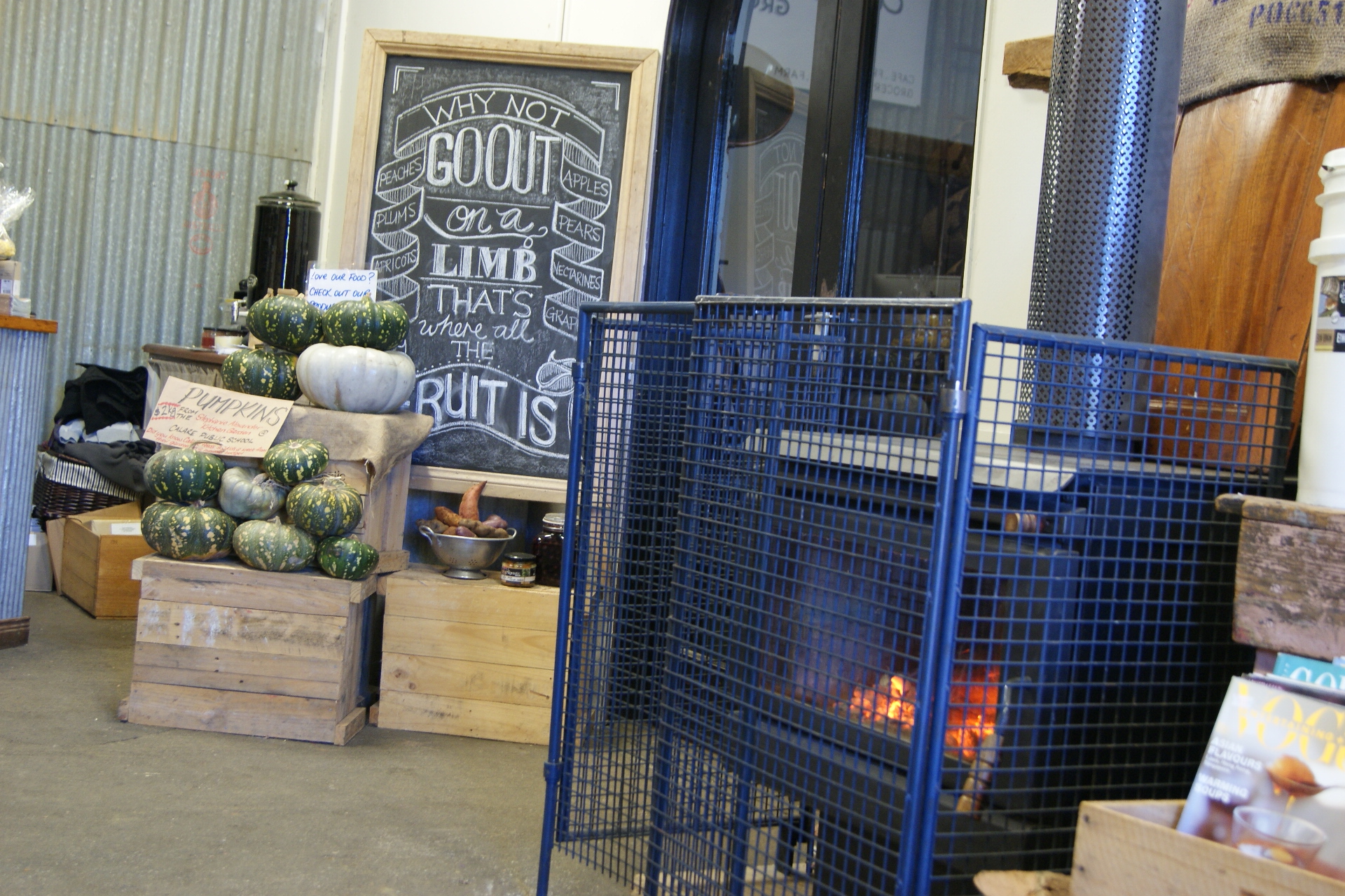It hardly seemed worth finding anywhere for lunch after such a satisfying coffee (and cake) so I set off for Dubbo late morning. On the outskirts of town I passed a sign for The Agrestic Grocer. Angela Owens at ABC Radio had suggested it would be a good place for brunch, so I pulled over, intending to buy a couple of apples for the two hour trip to Dubbo. I was planning a stop of no more than five minutes; I stayed an hour and a half.