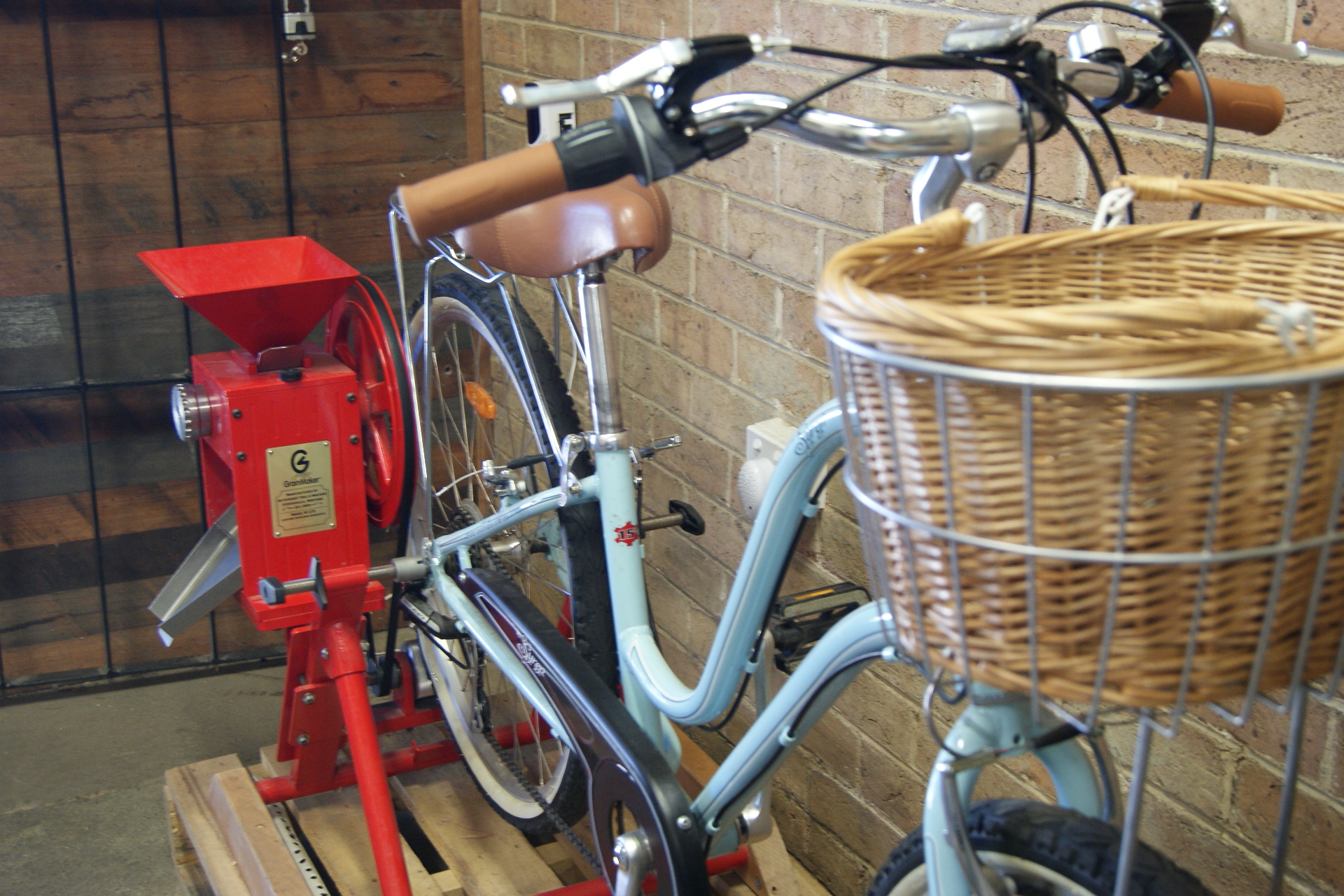 Oh what delights! An enormous wood-burner warmed the entrance and a traditional chalkboard welcomed visitors, there was even a static bicycle demonstrating how pedal power could crush grains of wheat.