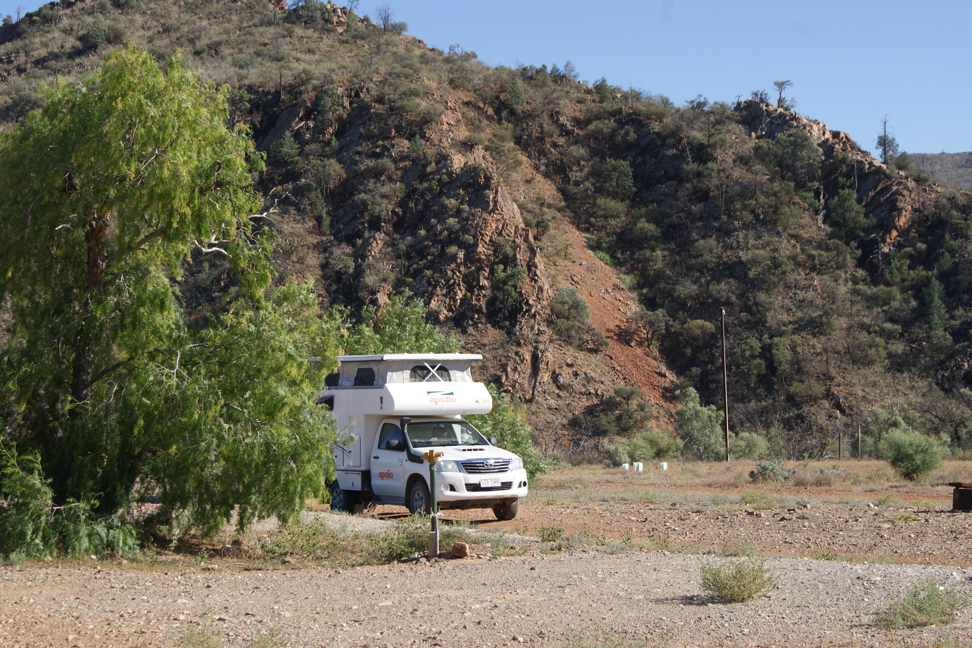 Arriving late we parked on flat ground high up in the ranges and woke to an unspoilt, pristine environment with clean air and rugged views (and a decent shower block) – everything you’d hope to find on an outback camping adventure.